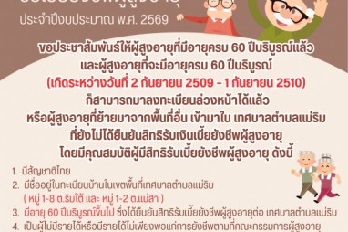 ประชาสัมพันธ์ การยืนยันสิทธิรับเบี้ยยังชีพผู้สูงอายุ ประจำปีงบประมาณ พ.ศ. 2569