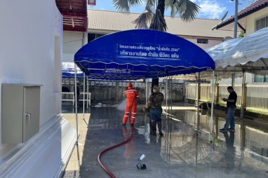 งานป้องกันและบรรเทาสาธารณภัย ได้รับแจ้งจากทางอำเภอแม่ริม ขอความอนุเคราะห์รถบรรทุกน้ำดับเพลิง พร้อมเจ้าหน้าที่ ออกล้างบริเวณศาลหลักเมืองอำเภอแม่ริม ในวันที่ 11 พฤศจิกายน 2568