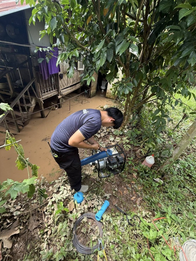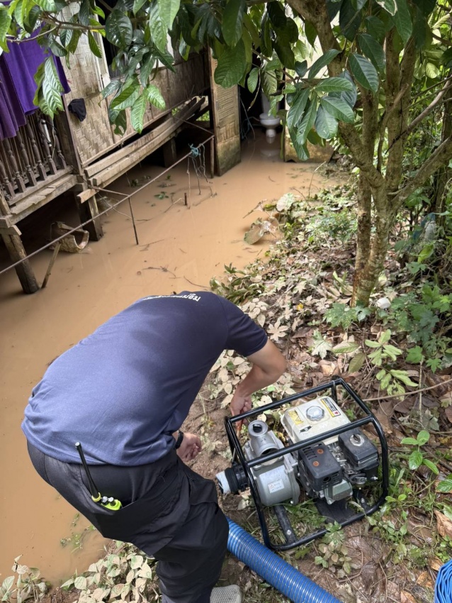 งานป้องกันและบรรเทาสาธารณภัย ได้รับแจ้งขอความอนุเคราะห์ออกช่วยเหลือดำเนินการสูบน้ำ เนื่องจากน้ำท่วมขังในบ้านเรือนประชาชน ชุมชนห้วยโจ้ ในวันที่ 12 กันยายน 2568