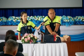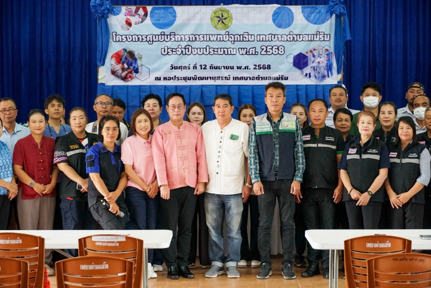 งานป้องกันและบรรเทาสาธารณภัย สำนักปลัด เทศบาลตำบลแม่ริม ดำเนินการจัดฝึกอบรมตามโครงการศูนย์บริการการแพทย์ฉุกเฉิน ในวันที่ 12 กันยายน 2568