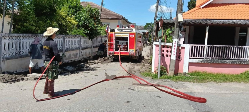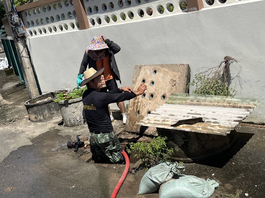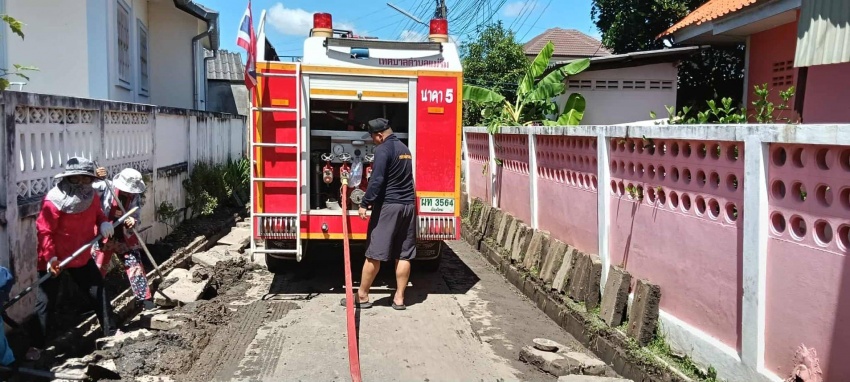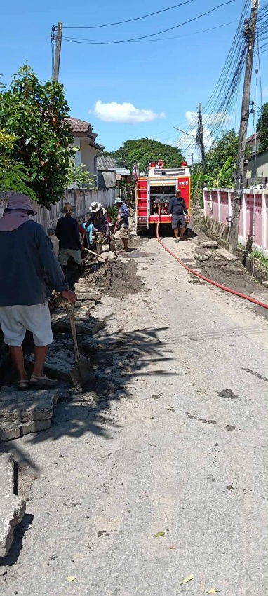 จ้าหน้าที่งานป้องกันและบรรเทาสาธารณภัย จัดเจ้าหน้าที่พร้อมรถดับเพลิงราคา 5 ออกดำเนินการล้างถนน และใช้แรงดันน้ำดันท่อพร้อมทั้งรางระบายน้ำในชุมชนต้นแก้ว ซอย 6 ในวันที่ 28 กันยายน 2568