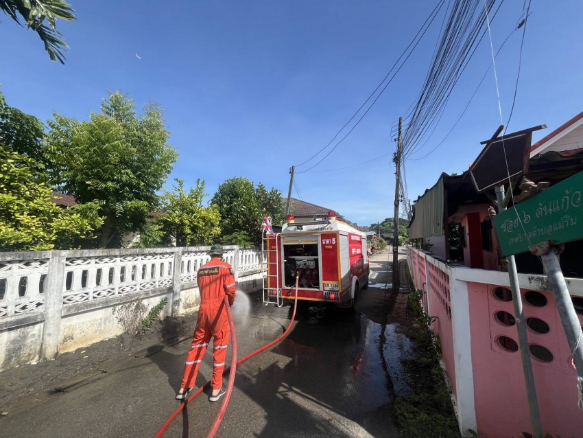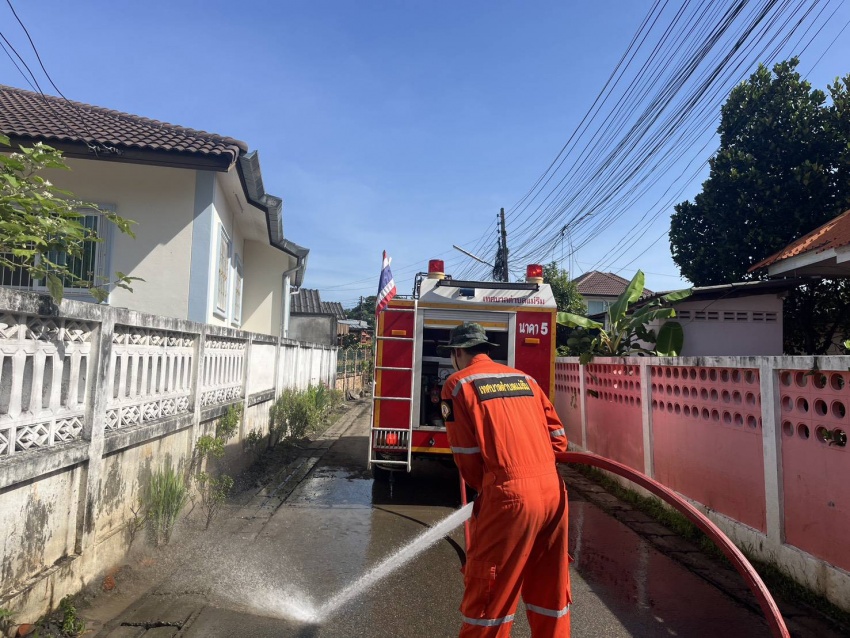 เวลา 09.00 น. เจ้าหน้าที่งานป้องกันและบรรเทาสาธารณภัย จัดเจ้าหน้าที่พร้อมรถดับเพลิงนาคา 5 ออกดำเนินการล้างถนนบริเวณ ชุมชนต้นแก้ว ซอย 6 เป็นที่เรียบร้อย