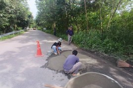 เทศบาลตำบลแม่ริมลงพื้นที่ ซ่อมแซมถนนชำรุด ในวันที่ 29 กันยายน 2568