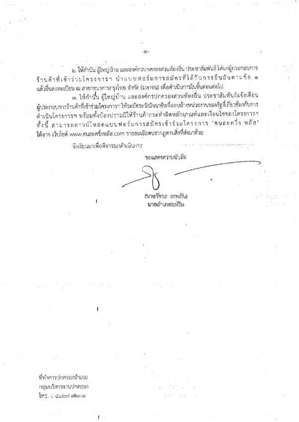 ประชาสัมพันธ์ โครงการ "คนละครึ่ง พลัส"