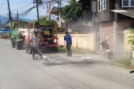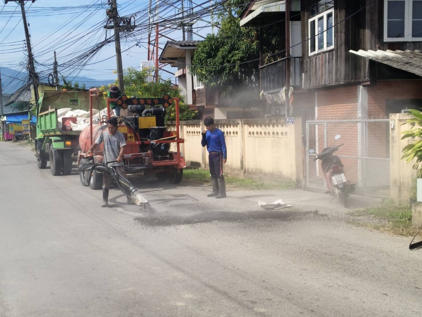 เทศบาลตำบลแม่ริมลงพื้นที่ ซ่อมแซมถนนชำรุด