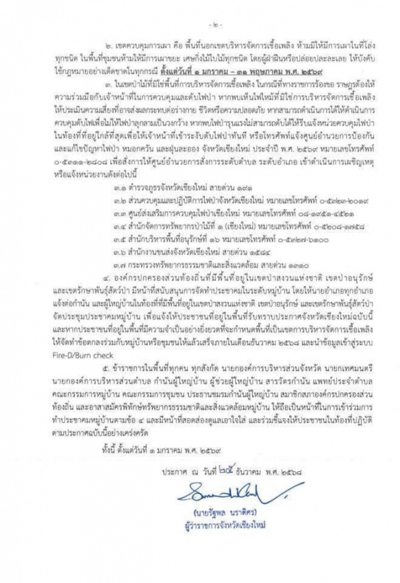 ประชาสัมพันธ์ ประกาศจังหวัดเชียงใหม่ เรื่อง กำหนดเขตการบริหารจัดการเชื้อเพลิงและเขตควบคุมการเผาของจังหวัดเชียงใหม่ ประจำปีงบประมาณ พ.ศ. 2569