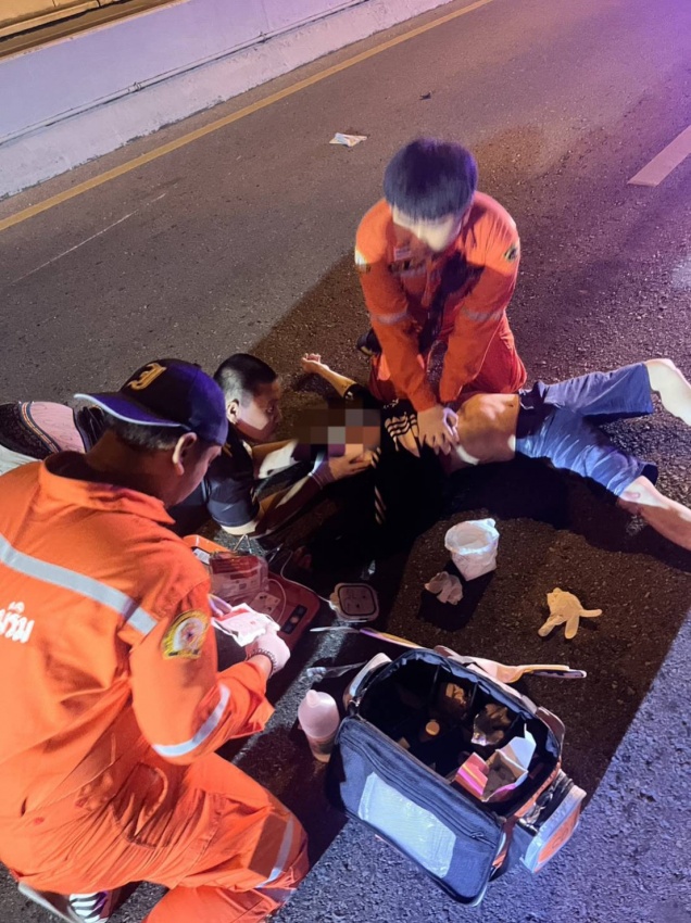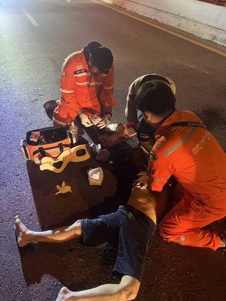 เวลา 00:10 น. เทศบาลตำบลแม่ริมได้รับแจ้งจากศูนย์วิทยุเอราวัณ ออกตรวจสอบอุบัติเหตุ บริเวณสะพานชุมชนขอนตาล จึงได้นำเรียนผู้บังคับบัญชาสั่งการให้ทีมกู้ชีพประกายพฤกษ์ออกช่วยเหลือ พบผู้ได้รับบาดเจ็บชาย 1 ราย ไม่มีชีพจร ไม่หายใจ จึงรีบทำการ CPR และประสานรถEMS รพ.สันทราย เพื่อนำส่งผู้บาดเจ็บ ไปยัง รพ.สันทราย ต่อไป
