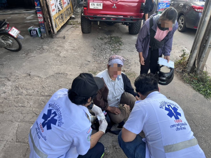 เทศบาลตำบลแม่ริมได้รับแจ้งจากศูนย์วิทยุเอราวัณออกตรวจสอบอุบัติเหตุ รถยนต์ชนกับรถจักรยานยนต์บริเวณหน้าร้านสาธุหมูกระทะ ในวันที่ 23 ธันวาคม 2568
