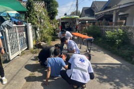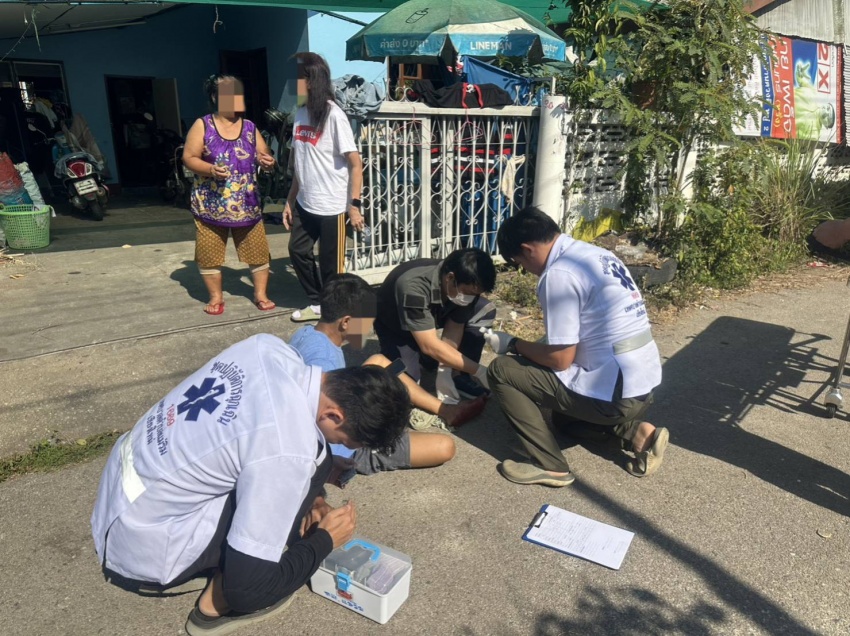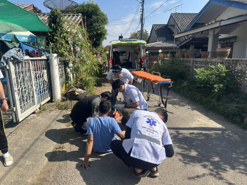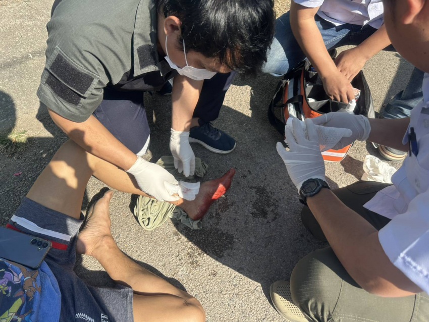 เทศบาลตำบลแม่ริมได้รับแจ้งจากศูนย์วิทยุเอราวัณออกตรวจสอบผู้ได้รับบาดเจ็บถูกเครื่องเจียร์บาดข้อเท้าบ้านดวงดี ในวันที่ 23 ธันวาคม 2568