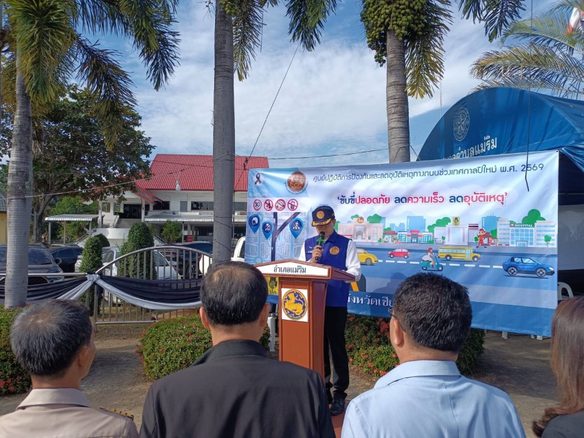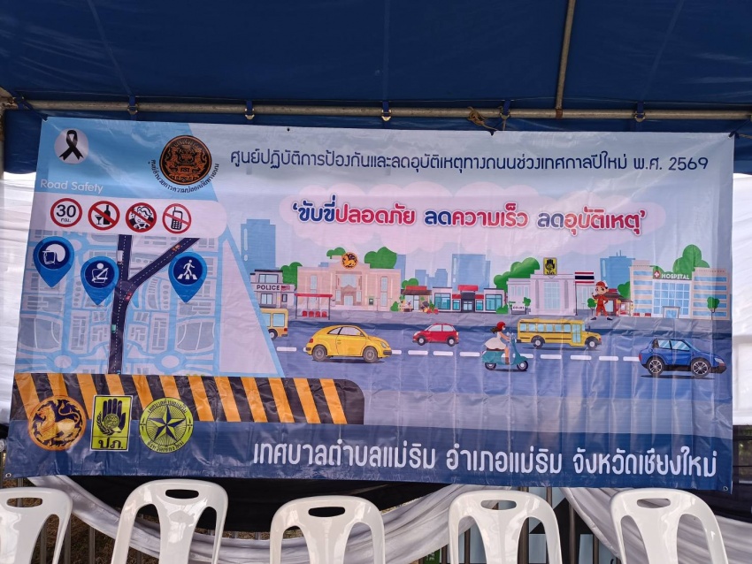 วันที่ 30 ธันวาคม 2568 นางอำไพพรรณ ทับทอง นายกเทศมนตรีตำบลแม่ริม มอบหมายให้ คณะผู้บริหาร เจ้าหน้าที่ พนักงานเทศบาลตำบลแม่ริม เข้าร่วมพิธีเปิดศูนย์ปฏิบัติการป้องกันและลดอุบัติเหตุทางถนนช่วงเทศกาลปีใหม่ พ.ศ. 2569 ณ บริเวณหน้าที่ว่าการอำเภอแม่ริม เพื่อเป็นการป้องกันและลดอุบัติเหตุทางถนนช่วงเทศกาลปีใหม่ ตั้งแต่วันที่ 30 ธันวาคม 2568 - 5 มกราคม 2569