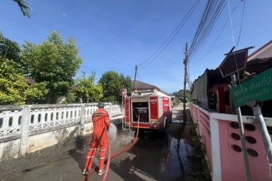 เจ้าหน้าที่งานป้องกันและบรรเทาสาธารณภัย จัดเจ้าหน้าที่พร้อมรถดับเพลิงนาคา 5 ออกดำเนินการล้างถนนบริเวณ ชุมชนต้นแก้ว ซอย 6 ในวันที่ 29 กันยายน 2568