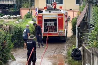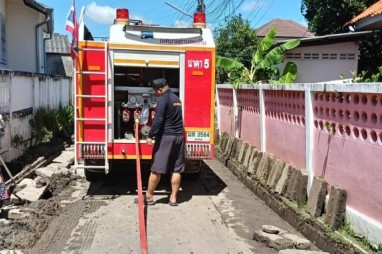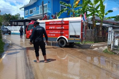 จ้าหน้าที่งานป้องกันและบรรเทาสาธารณภัย จัดเจ้าหน้าที่พร้อมรถดับเพลิงราคา 5 ออกดำเนินการล้างถนน และใช้แรงดันน้ำดันท่อพร้อมทั้งรางระบายน้ำในชุมชนต้นแก้ว ซอย 6 ในวันที่ 28 กันยายน 2568