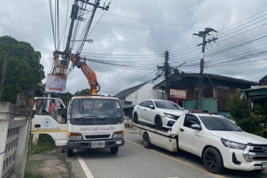 เจ้าหน้าที่กองช่าง เทศบาลตำบลแม่ริม ออกตรวจสอบดำเนินการซ่อมแซมไฟกิ่งถนน บริเวณชุมชนในเขตเทศบาล ในวันที่ 23 กันยายน 2568