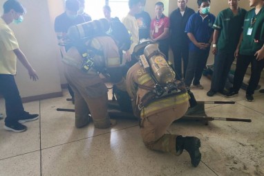 งานป้องกันและบรรเทาสาธารณภัย พร้อมรถดับเพลิงนาคา2 และเจ้าหน้าที่ดับเพลิงทั้งหมด 6 นาย ออกร่วมซ้อมแผนดับเพลิงและอพยพหนีไฟ ของโรงพยาบาลสันทราย ในวันที่ 25 กันยายน 2568
