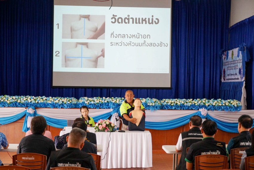 งานป้องกันและบรรเทาสาธารณภัย สำนักปลัด เทศบาลตำบลแม่ริม ดำเนินการจัดฝึกอบรมตามโครงการศูนย์บริการการแพทย์ฉุกเฉิน ในวันที่ 12 กันยายน 2568