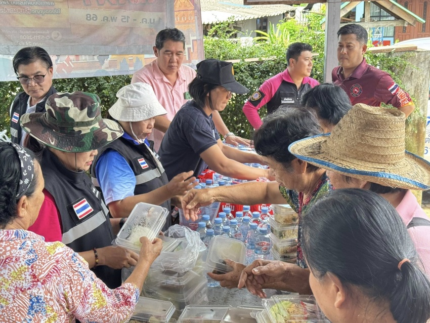 เจ้าหน้าที่เทศบาลตำบลแม่ริม ลงพื้นที่ ในเขตเทศบาลที่น้ำท่วม เพื่อแจกอาหารมื้อกลางวัน และน้ำดื่มช่วยเหลือประชาชน และเตรียมความพร้อม ในวันที่ 23 กันยายน 2568