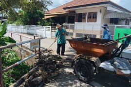 นางอำไพพรรณ ทับทอง นายกเทศมนตรีตำบลแม่ริม มอบหมายให้เจ้าหน้าที่กองช่าง ออกตรวจสอบและดำเนินการนำเศษกิ่งไม้ออกจากลำเหมือง บริเวณลำเหมืองชุมชนทรายมูล ในวันที่ 24 กันยายน 2568