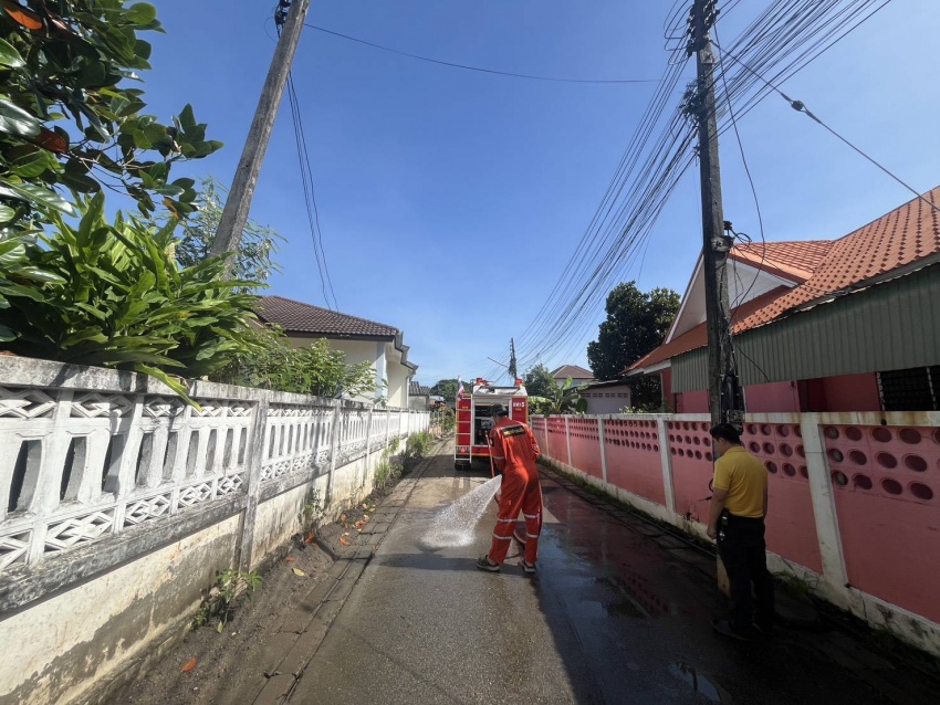 เวลา 09.00 น. เจ้าหน้าที่งานป้องกันและบรรเทาสาธารณภัย จัดเจ้าหน้าที่พร้อมรถดับเพลิงนาคา 5 ออกดำเนินการล้างถนนบริเวณ ชุมชนต้นแก้ว ซอย 6 เป็นที่เรียบร้อย