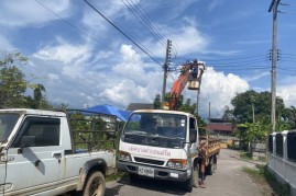 เจ้าหน้าที่กองช่าง เทศบาลตำบลแม่ริม ออกตรวจสอบดำเนินการซ่อมแซมไฟกิ่งถนน บริเวณชุมชนในเขตเทศบาล ในวันที่ 10 ตุลาคม 2568
