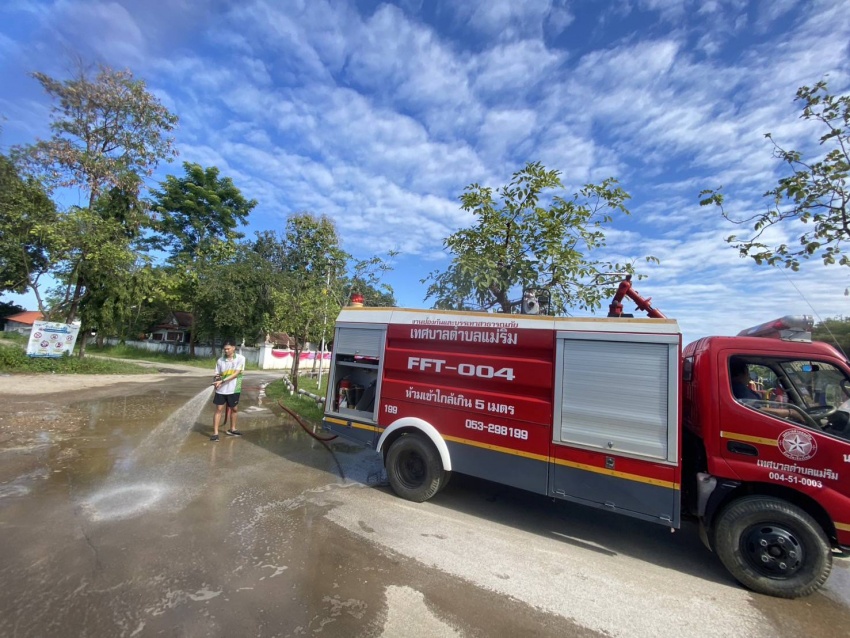 งานป้องกันและบรรเทาสาธารณภัย ได้จัดรถดับเพลิงนาคา 5 พร้อมเจ้าหน้าที่ ออกดำเนินการล้างทำความสะอาดถนนบริเวณสนามเด็กเล่นของเทศบาล ในวันที่ 23 ตุลาคม 2568