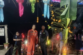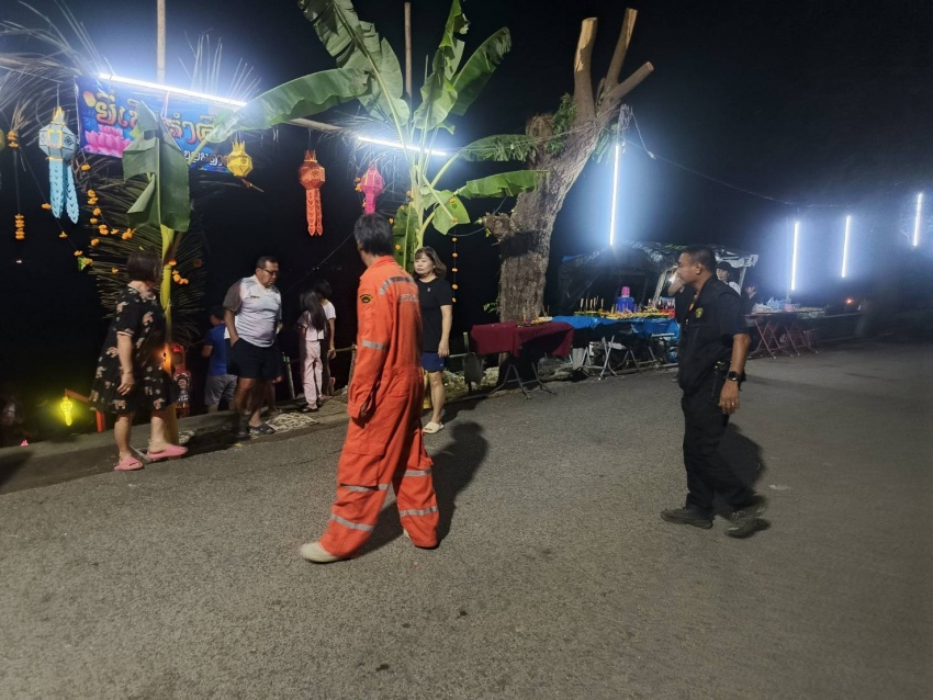 เจ้าหน้าที่งานป้องกันและบรรเทาสาธารณภัย และเจ้าหน้าที่เทศกิจ ออกตรวจสอบความเรียบร้อยในช่วงเทศกาลลอยกระทงประจำปี พ.ศ. 2568 ในวันที่ 6 พฤศจิกายน 2568