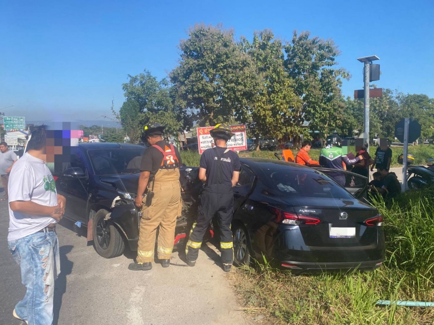 เวลา 14:30 น. เทศบาลตำบลแม่ริมได้รับแจ้งจากศูนย์วิทยุเอราวัณ และสภ.แม่ริม ออกตรวจสอบอุบัติเหตุรถยนต์ชนกัน มีผู้ได้รับบาดเจ็บและมีกลุ่มควันออกจากตัวรถ บริเวณแยกสะพานคุ้มเสือ จึงได้นำเรียนผู้บังคับบัญชา สั่งการให้ทีมกู้ชีพ-กู้ภัยประกายพฤกษ์ออกช่วยเหลือ พบผู้ได้รับบาดเจ็บเป็นหญิง 2 ราย จึงได้ประสานรถกู้ชีพสายธาร (เทศบาลตำบลแม่แรม) ช่วยเหลือนำส่งโรงพยาบาล และอีก 1 รายกู้ชีพเทศบาลแม่ริมนำส่งโรงพยาบาลต่อไป
